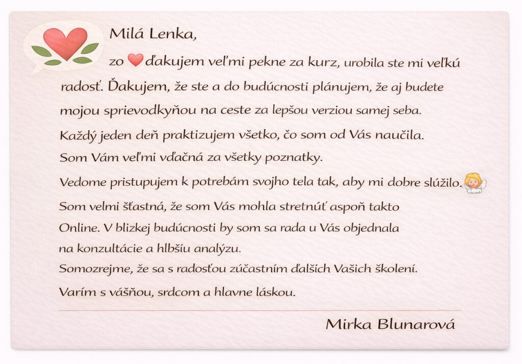Ak máš otázky alebo si nie si niečím istá, pokojne mi napíš: info@lenkaslnieckova.sk